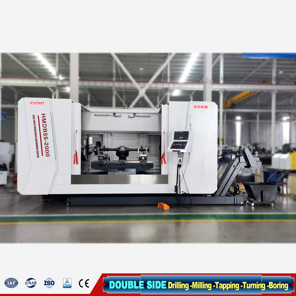 تتم معالجة الوجوهين النهائيين في وقت واحد ، ويتم تجهيز كل جانب بمجلة لتغيير الأداة التلقائية لتلبية معالجة الحفر والاستفادة من المواقع والمواصفات المختلفة.